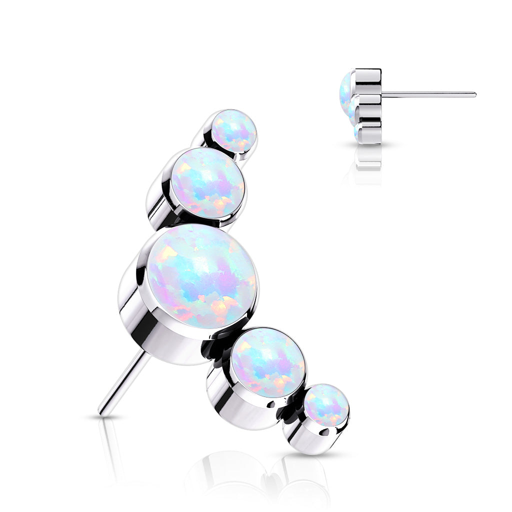 This 5 Opal Threadless Top is made with Implant Grade Titanium, ensuring durability and safety for body piercings. Its delicate opal design adds a touch of elegance to any piercing, making it a perfect choice for someone looking for both style and functionality.