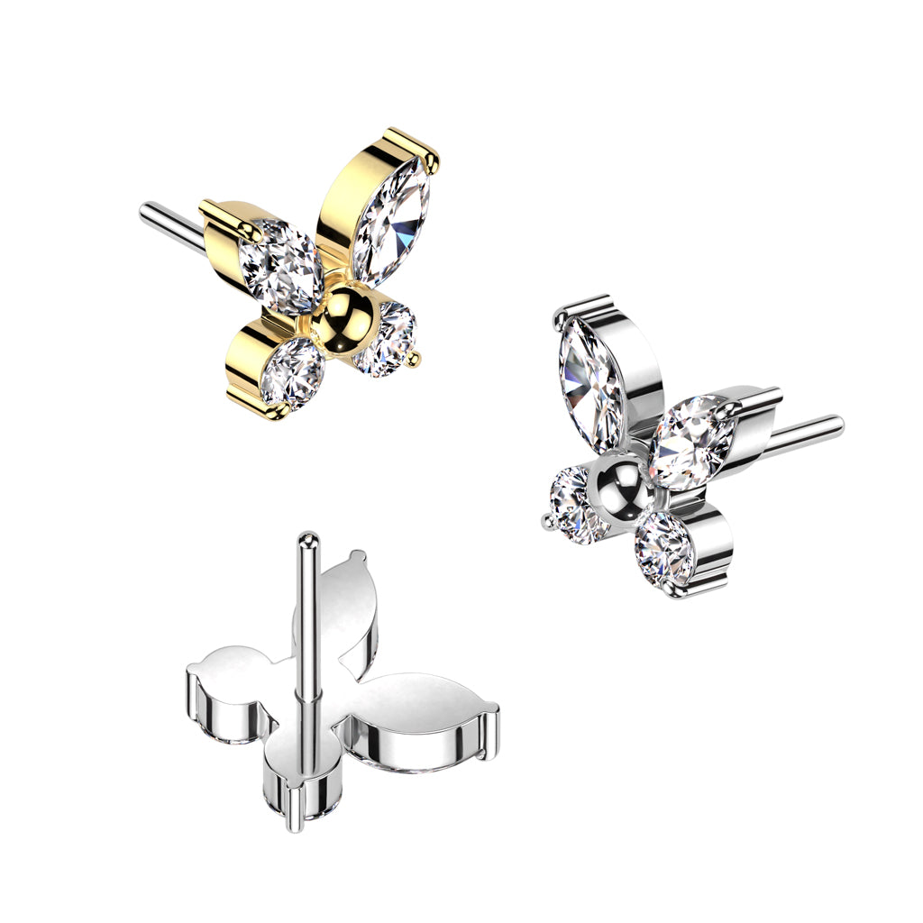 This titanium Threadless Top is crafted with high-quality implant grade material for durability and safety. Its unique butterfly design adds a touch of elegance to any piercing. Secure and stylish, this top is a must-have for any piercing enthusiast.
