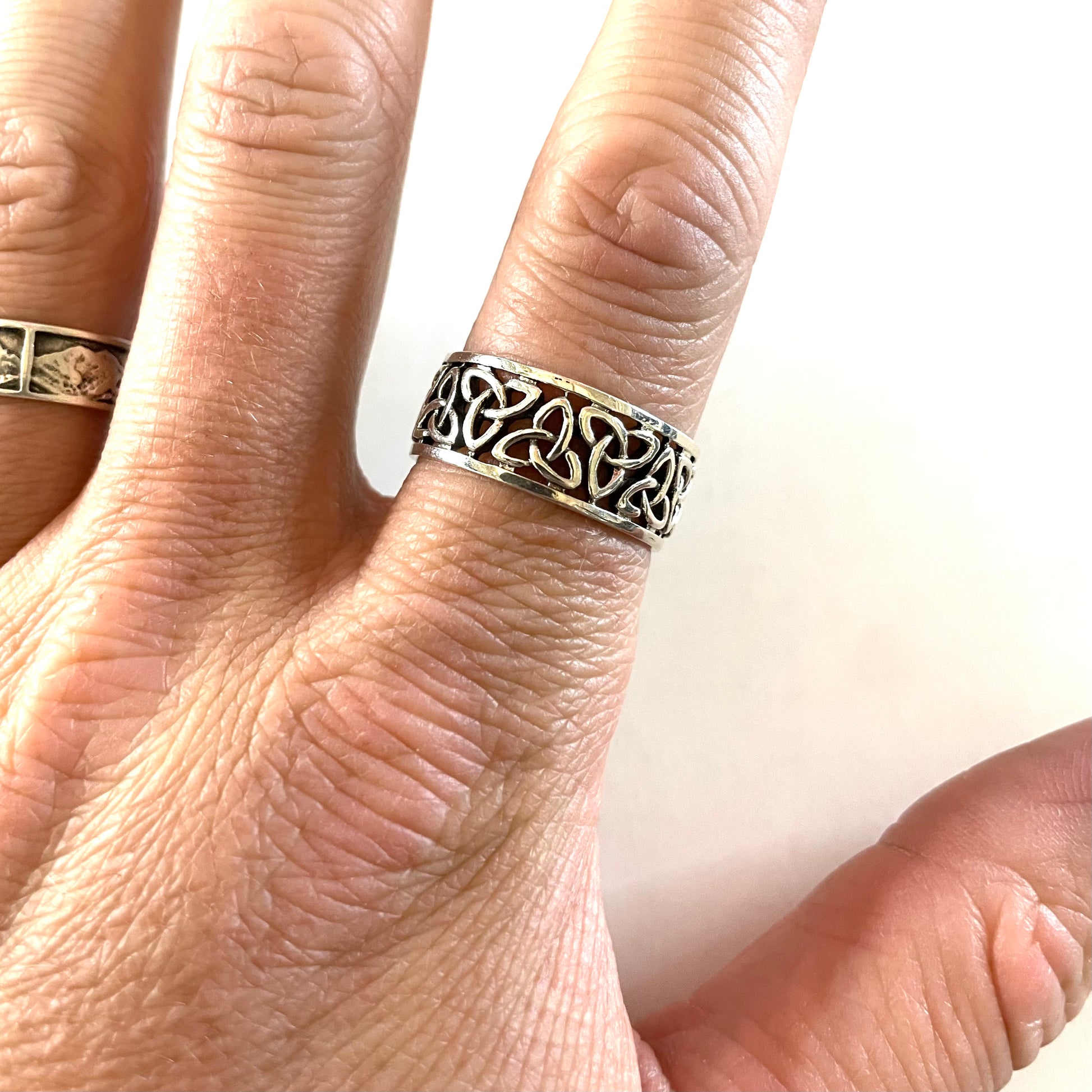 Experience the beauty and symbolism of Celtic culture with our Celtic Band. Made of sterling silver, this band showcases an intricately designed Celtic Triquetra ring. Perfect for those seeking a meaningful and elegant accessory.