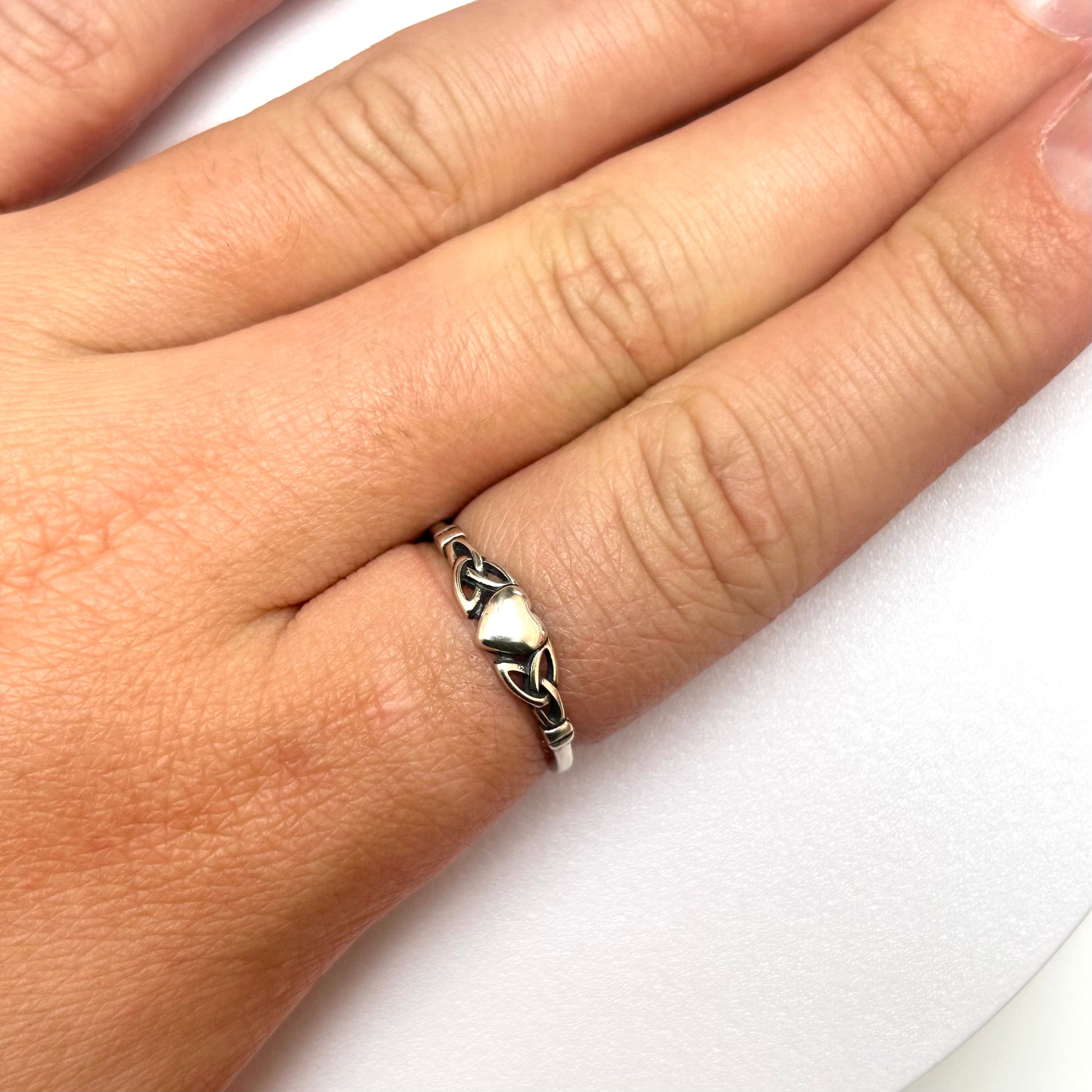 This Celtic Heart Ring is a symbol of everlasting love and devotion. Made of high-quality sterling silver, it is a timeless piece that exudes elegance and charm. Crafted with intricate Celtic designs, it adds a touch of cultural heritage to any outfit. A must-have for anyone looking to add a touch of sophistication to their jewelry collection.