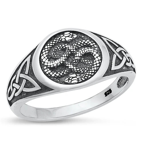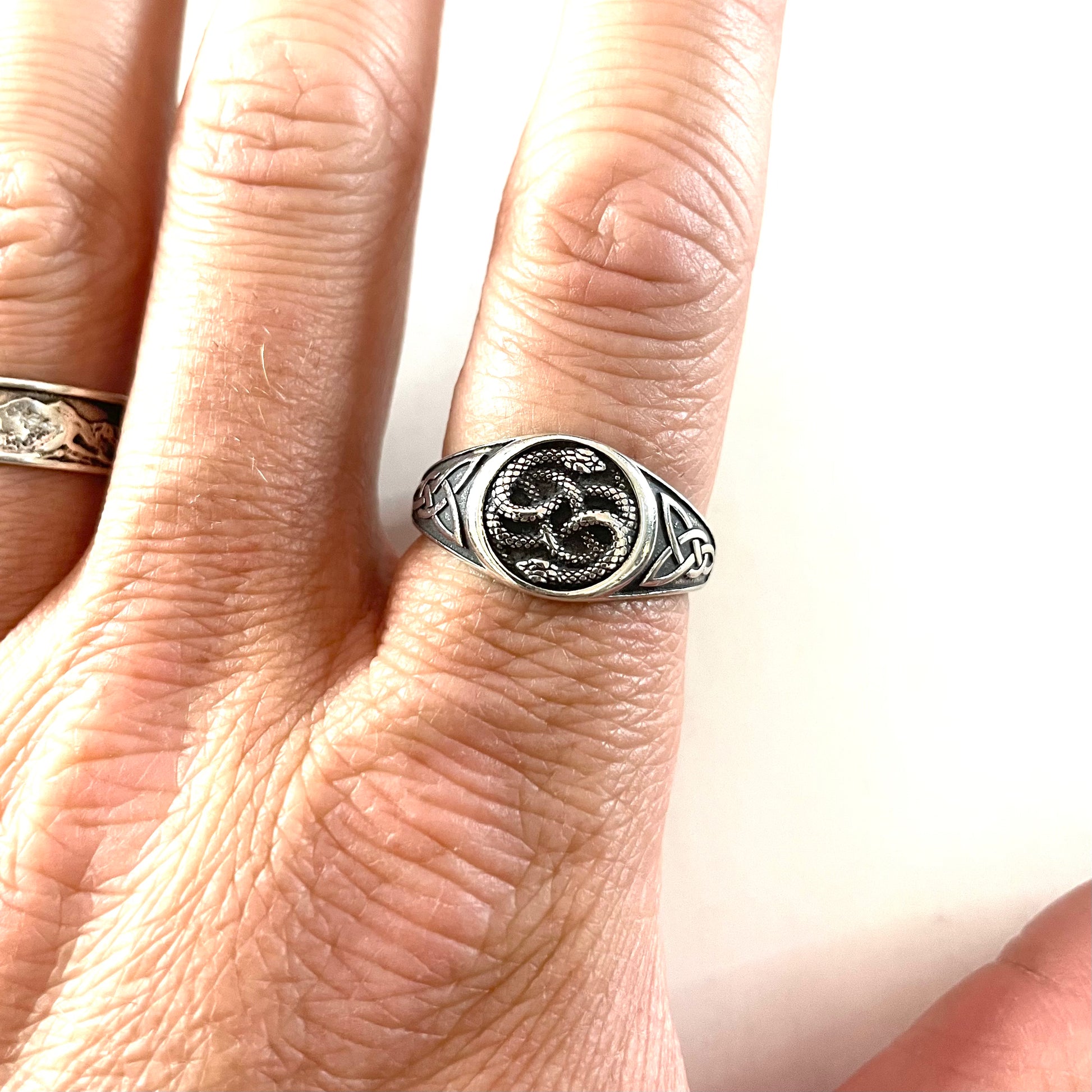 Discover the ancient symbolism of the Celtic Snake Ring. Handcrafted from sterling silver, this ring represents rebirth, transformation, and protection. A unique addition to any jewelry collection, perfect for the modern wearer who appreciates the mystical and historic significance of this timeless symbol.