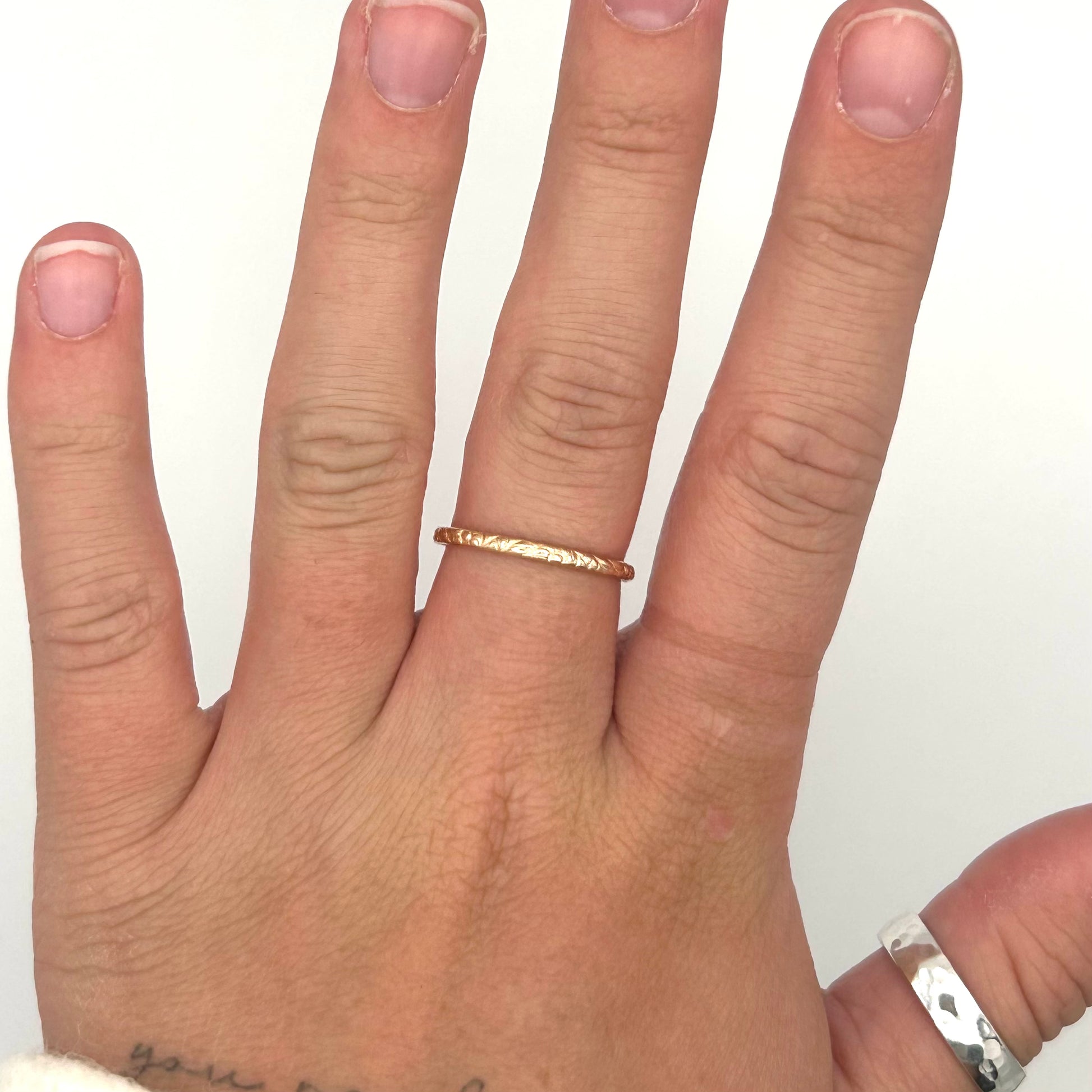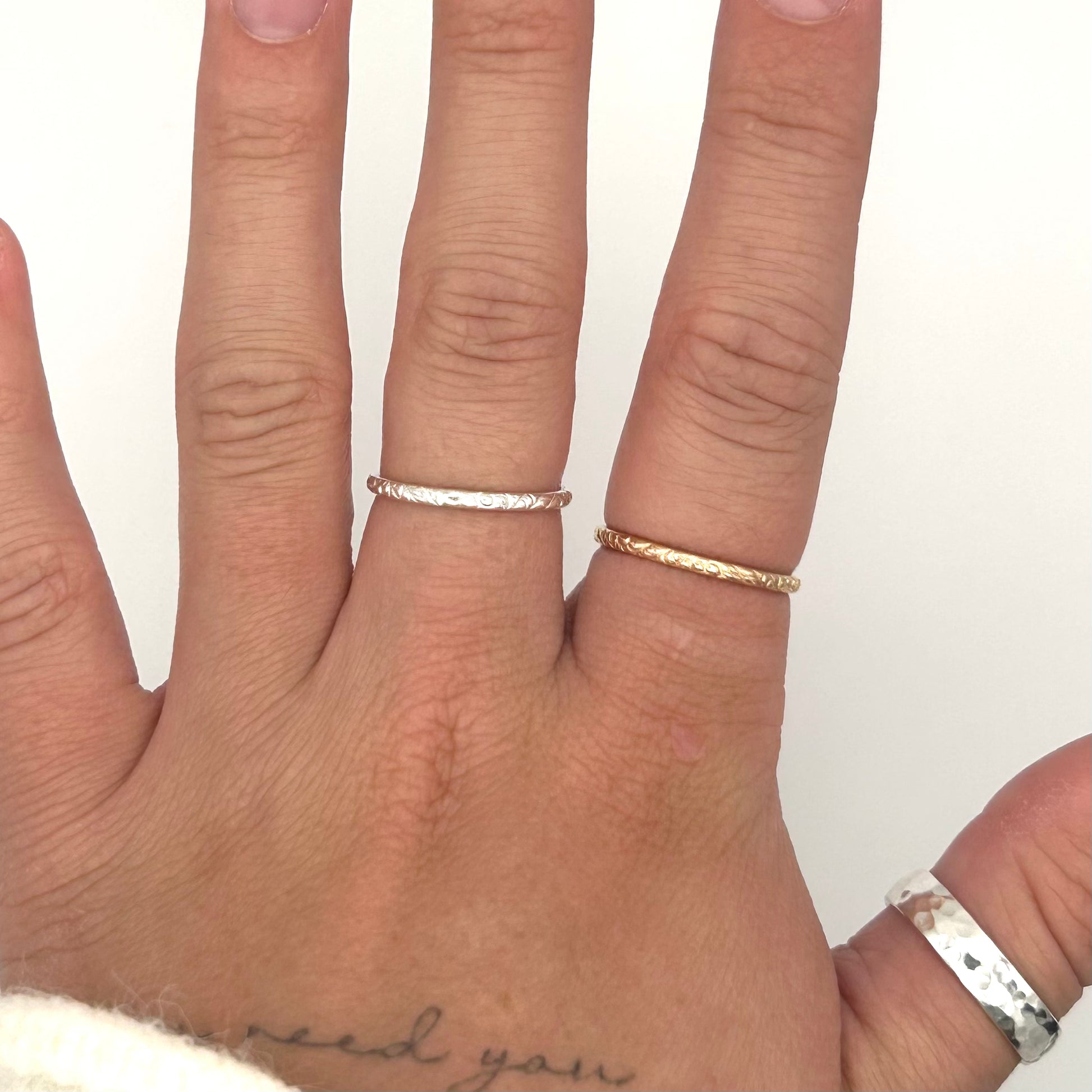This Floral Ring is expertly crafted with a stunning floral pattern in sterling silver and gold fill. The combination of these high-quality materials ensures durability and timeless elegance. Elevate any outfit with this unique and timeless piece.