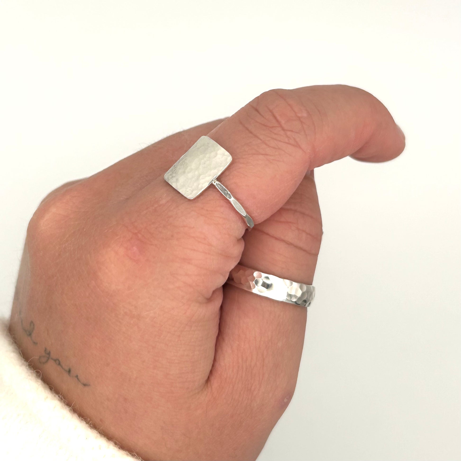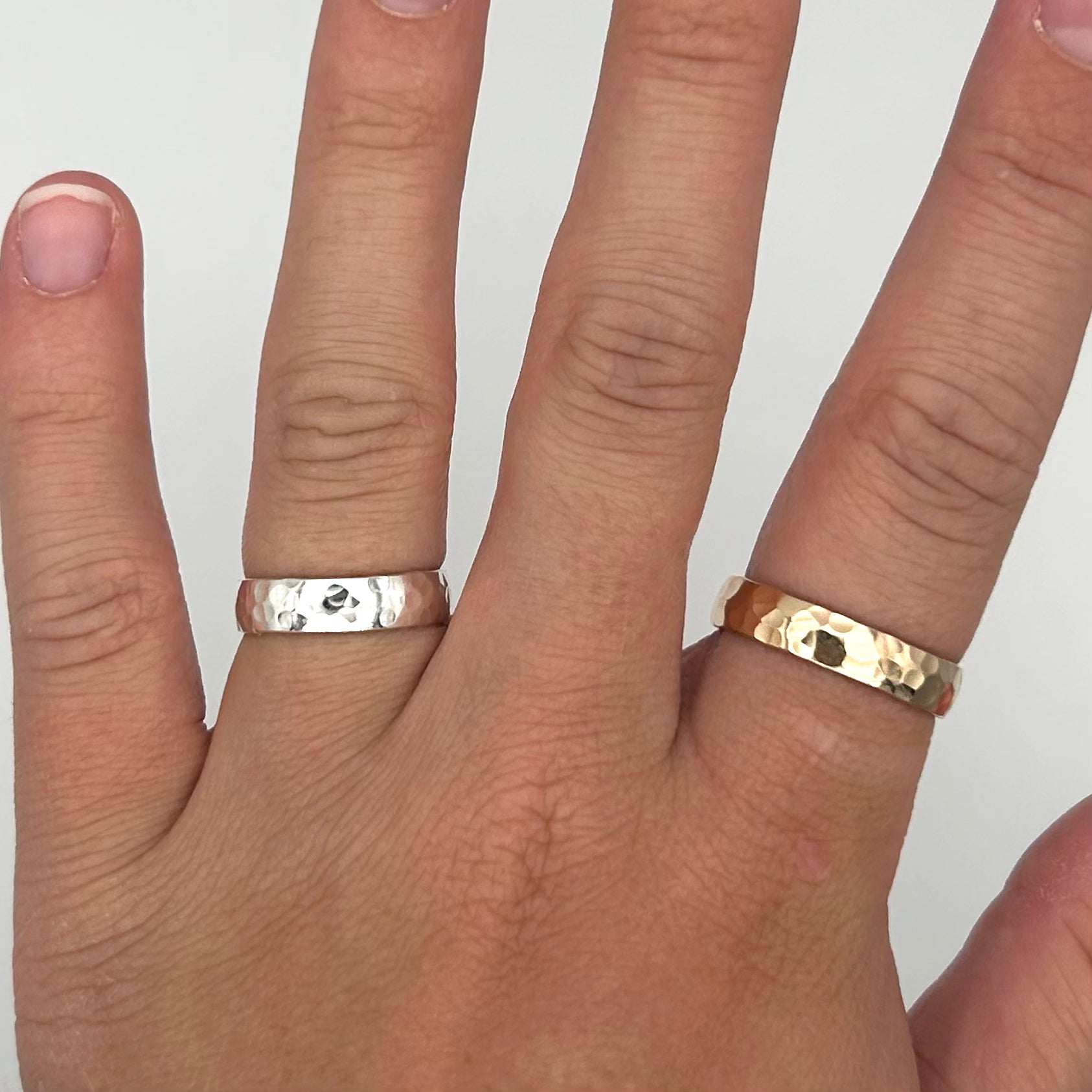 This expertly crafted Hammered Ring is made of high-quality Sterling Silver and 14k Gold Fill. With a unique hammered texture, this ring is both elegant and durable, making it the perfect addition to any jewelry collection. Handmade by skilled artisans, it offers a timeless and sophisticated look.