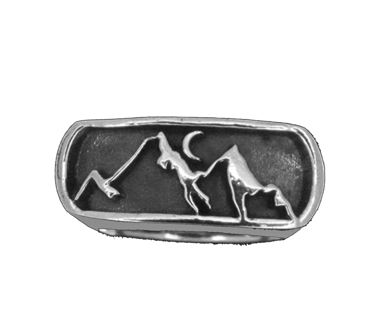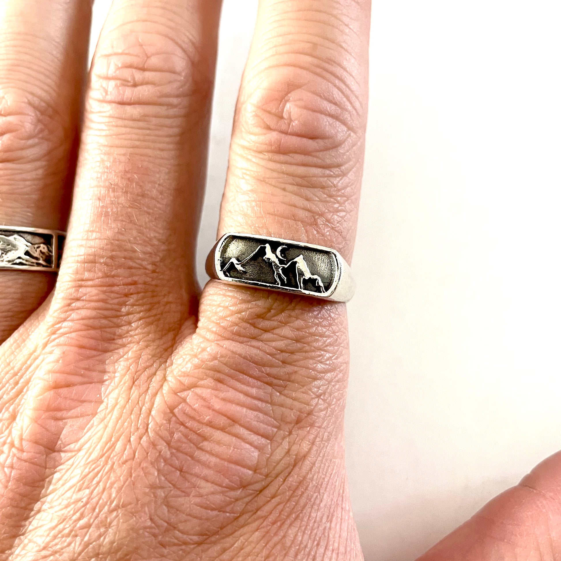 Elevate your style with our Mountain & Moon Ring. Crafted from high-quality sterling silver, this ring features a striking signet design with intricate mountain and moon details. Perfect for outdoor enthusiasts or anyone seeking a unique accessory. Handcrafted with precision and built to last.