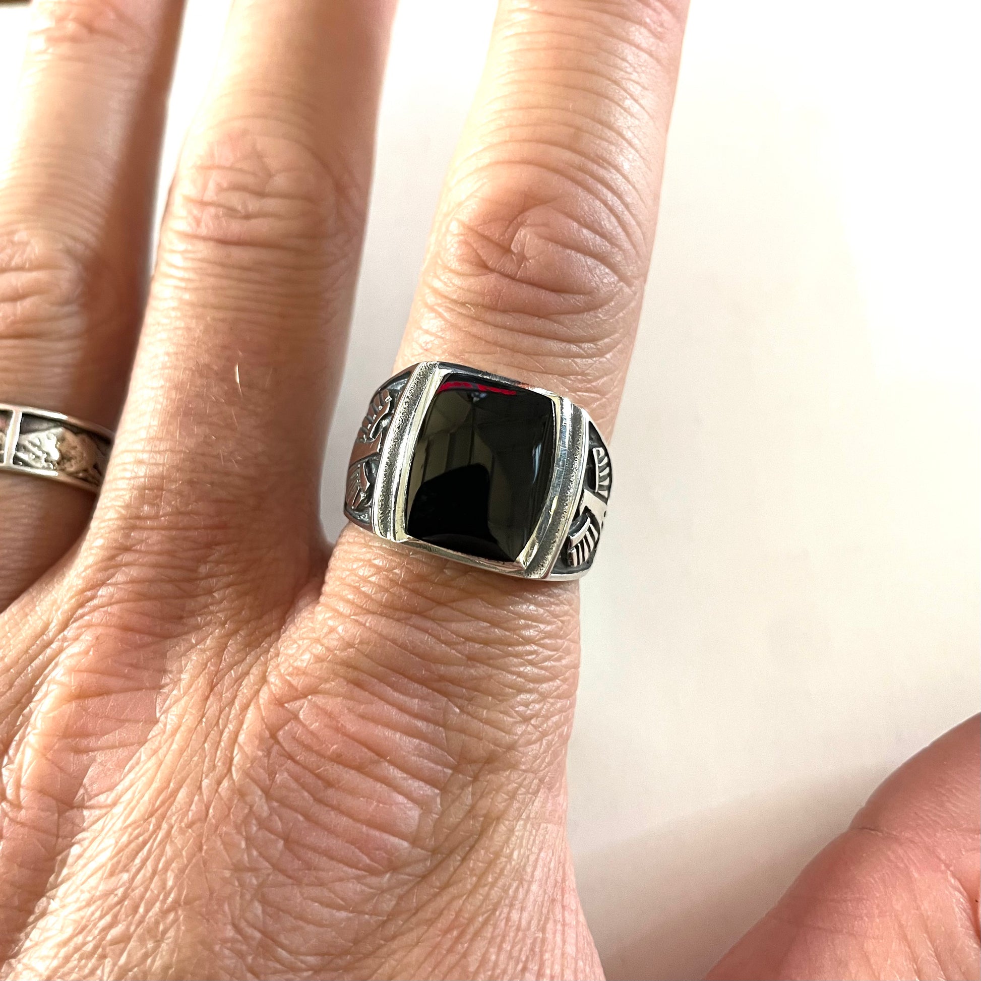 This elegant Onyx Ring features a stunning Onyx stone set in high-quality Sterling Silver, with an intricate Eagle design. The Onyx stone is known for its protective and energizing properties, while Sterling Silver adds durability and a timeless touch. Elevate your style with this unique and meaningful accessory.