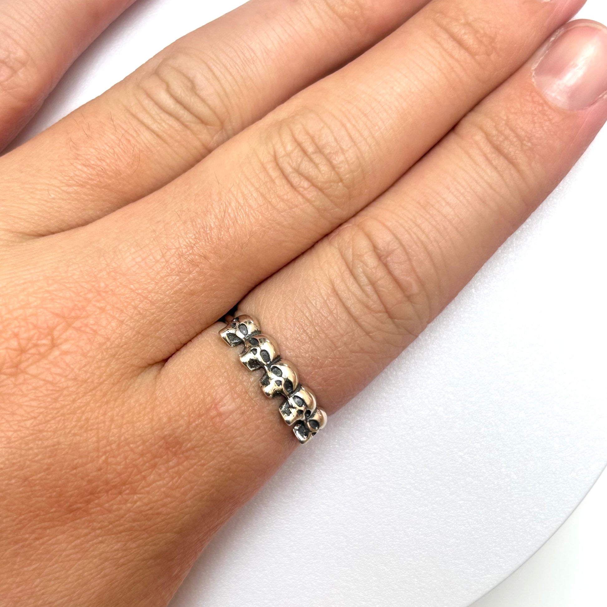 Expertly crafted from premium sterling silver, our Skull Head Ring is a must-have for any edgy and stylish individual. With a unique skull head design, this ring is perfect for adding a touch of badassness to any outfit. Upgrade your accessory game with this one-of-a-kind piece.